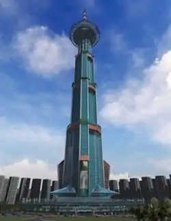 There were separate plan to build a 200 m (660 ft) DNA-like structure which both had retail and observation tower function.[4]