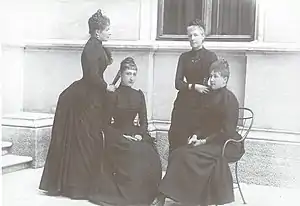 From the time she was 6 years old, Louise had benefited from homeschooling from teachers who provided her with various courses: French, English, German and Italian for languages, while lessons in superficial mathematics, horse riding, history, religion and music were also given to her.[8] However, the level of education of the princesses was not very high: "The programs lacked scope. In the severe decor of the study room, it was usually too rudimentary that we applied ourselves to history, geography, literature, mathematics; a preponderant place being left to the decorative arts: painting, drawing, music, as well as needlework".[9]
