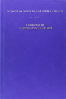 Principles of Mathematical Analysis, colloquially known as "PMA" or "Baby Rudin,"[1] is an undergraduate real analysis textbook written by Walter Rudin. Initially published by McGraw Hill in 1953, it is one of the most famous mathematics textbooks ever written,[1] and is renowned for its elegant and concise style of proof.[2]