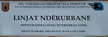 - "Orari për linjën e autobusit, Prishtinë- Aeroport- Prishtinë". albinfo.ch. 1 May 2019. Retrieved 13 April 2020.
