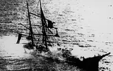 Her final voyage under Laeisz ownership commenced on 23 May 1939 at Hamburg, bound for Valparaiso.[11] During the voyage, on a rare mid-ocean meeting in the South Atlantic, Priwall passed by the Finnish barque Lawhill en route from South Australia to Europe with a cargo of grain; Priwall also sighted the liner Cap Arcona. The ship rounded Cape Horn on 21 July in the gale-force winds of the southern winter as the last commercial windjammer completing this east-to-west passage, and reached the sheltered anchorage of Corral, Chile. There the crew maneuvered the mizzen upper top yard to the foremast to replace its broken upper top yard. Continuing on to Talcahuano to off-load freight, she finally arrived at Valparaiso on 3 September 1939. Priwall was then interned at Valparaiso at the onset of the Second World War.[12] In 1941, to avoid potential seizure by the Allies, the ship was deeded as a gift to the Republic of Chile in a ceremony attended by the Governor of Valparaíso, Mr. Alfredo Rodríguez Mac-Iver. Renamed Lautaro, she was used as a cargo carrying training ship by the Chilean Navy. On 28 February 1945, while loading nitrate, she caught fire off the Peruvian coast and was destroyed.[3]