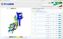 - This tool takes as an input a query protein or a binding site. The ProBiS algorithm structurally compares the query independently of sequence or fold with a database of non-redundant protein structures. The output of this tool are a 3D query protein colored by degrees of structural conservation from blue (unconserved) to red (structurally conserved) in Jmol viewer and a table of similar proteins.