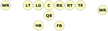 A variation of the pro set places the backs offset toward either side. This look is almost universally used with one fullback and one halfback. The backs line up closer to the line of scrimmage than in a standard pro set, about 3 yards deep. The fullback lines up directly behind the quarterback, in the same spot as in the I-Formation. The halfback then lines up behind either the left or right tackle.