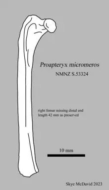 Proapteryx micromeros is an extinct kiwi known from the 16–19 million-year-old early Miocene sediments of the St Bathans Fauna of Otago, New Zealand.[1][2]