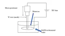 - Bani Milhim, Alaeddin; Ben Mrad, Ridha (2014). "Electrochemical etching technique: Conical-long-sharp tungsten tips for nano-applications". Journal of Vacuum Science & Technology B, Nanotechnology and Microelectronics: Materials, Processing, Measurement, and Phenomena. 32 (3): 031806. doi:10.1116/1.4873700.