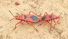 Probergrothius sanguinolens is a bug found in India. They feed on a range of seeds and are particularly common on the seeds of Sterculia and other Malvaceae. They also feed on freshly dead animal matter with early instar nymphs preferring animal matter to seeds.[2]