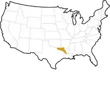Procambarus natchitochae live in streams and ditches with flowing current, clear to cloudy water, and rocky to sandy substrates.[3][4] The species is endemic to the United States and is listed as a species of least concern by the IUCN.[4]