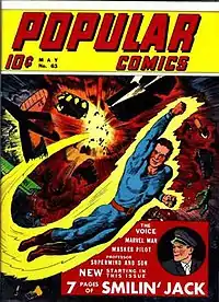 Professor Supermind and Son had the cover spot on Popular Comics through issue #66 (Aug 1941); with #67, they were replaced by The Adventures of Smilin' Jack.[4]
