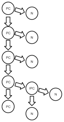 - Intermediate progenitor cells formed in the subventricular zone.[14] Some of these transit amplifying neural progenitors migrate via rostral migratory stream to the olfactory bulb and differentiate further into specific types of neural cells.