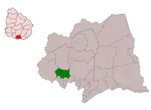 The city is located on the old Route 5 (which runs parallel to the railway track Montevideo - Santa Lucia), about 29 kilometres (18 mi) from the centre of Montevideo. It belongs to the wider metropolitan area of Montevideo.