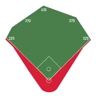 The park features distinctive dimensions; left and right field are both 325 feet (99 m) from homeplate, but left field has a 19-foot (6 m) high wall, known as the "Little Green Monster".[41][42] The center and right field walls are 9 feet (3 m) high. The park features traditional hunter green seats angled at 8-12° on three tiers around the park except for center field which has one short row of seating in front of the bullpens, and left field which uses bleachers.[43][44]