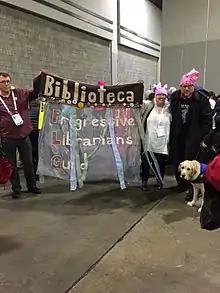 The Progressive Librarians Guild (PLG)[1] was founded in New York City in January 1990 by librarians concerned with the library profession's "rapid drift into dubious alliances with business and the information industry, and into complacent acceptance of service to an unquestioned political, economic and cultural status quo," according to the organization's statement of purpose.[2] The initial three organizers were Elaine Harger, Mark Rosenzweig and Elliot Shore.[3] The PLG addresses issues especially relating to librarianship and human rights.