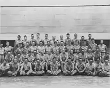 In all, Project Alberta consisted of 51 Army, Navy and civilian personnel.[16] Army personnel were two officers, Nolan and First Lieutenant John D. Hopper, and 17 enlisted men from the Manhattan Project's Special Engineer Detachment. Navy personnel were Parsons, Ashworth, Lieutenant Commander Edward C. Stephenson, Lieutenant (junior grade) Victor A. Miller, and eight ensigns. The remaining 17 were civilians.[17][18] The 1st Technical Service Detachment, to which the personnel of Project Alberta were administratively assigned, was commanded by Lieutenant Colonel Peer de Silva,[19] and provided security and housing services on Tinian.[13]