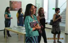 Carrano, Davis and Fisher describe themselves in Project Lives as native New Yorkers raised in different eras. The book shows that the courses were taught by Davis, and this is confirmed by the book website.[9] While the book's preface indicates that although all editors arranged the photographs, only Carrano and Fisher handled narration duties. The book's website reveals that Carrano and Davis had extensive experience in participatory photography prior to Project Lives, while Fisher had only been involved tangentially. Carrano curated exhibits of war photojournalism and participatory photography that The New York Times termed "poignant"[10] and "required viewing."[11] Meanwhile, Davis had done art enrichment stints at New York's Association for Metro Area Autistic Children and St. Louis Children's Hospital, the latter including starting up a participatory photography effort in the oncology ward, a program that continues to exist.[12] Video work created by Fisher and Davis won NYCHA an award from the National Association of Government Communicators in 2014.[13]