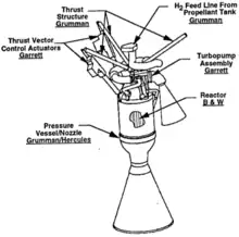 Project Timberwind aimed to develop nuclear thermal rockets. Initial funding by the Strategic Defense Initiative ("Star Wars") from 1987 through 1991 totaled $139 million (then-year).[1] The proposed rocket was later expanded into a larger design after the project was transferred to the Air Force Space Nuclear Thermal Propulsion (SNTP) program.