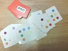 Projective Set (sometimes shortened to ProSet) is a real-time card game derived from the older game Set. The deck contains cards consisting of colored dots; some cards are laid out on the table and players attempt to find "Sets" among them. The word projective comes from the game's relation to Projective spaces over the finite field with two elements.[1]