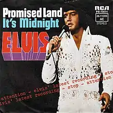 In December 1973, Elvis Presley recorded a powerful, driving version. Presley's version of "Promised Land" was released as a single on September 27, 1974. It peaked at number 14 on the Hot 100 Billboard charts,[9] and 9 on the UK Singles Chart in the fall of 1974.[10] It was included on his 1975 album Promised Land. The Presley version was used in the soundtrack of the 1997 motion picture Men in Black.