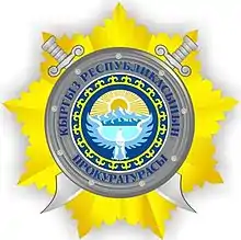 The Prosecutor General's Office of Kyrgyzstan (Kyrgyz: Кыргызстандын Башкы прокуратурасы, Russian: Генеральная прокуратура Кыргызстана) is a Kyrgyz government agency which is responsible for maintaining and supervising the public procurator system in Kyrgyzstan. The Prosecutor General of Kyrgyzstan is the highest government judicial official in Kyrgyzstan, who oversees the enforcement of the Kyrgyz legal system and the activities of law enforcement agencies.[1] The Prosecutor General is nominated by the President of Kyrgyzstan and is confirmed by the Supreme Council. The office is located on 139 Toktonaliyev Street in the capital of Bishkek.