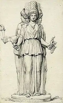 The name of "Prosphorion", which the harbour assumed after the foundation of Constantinople, could derive either from its proximity to the city market (Greek: πρόσφορον),[1] or from another denomination of the place, Phosphorion (Greek: Φωσφόριον), because of a legend which saw Hecate Phosphoros ("Light-Bringer") helping there during the night the defenders of Byzantium besieged by Philip of Macedonia.[3] Another theory assumes that the name came from the nearby market of the oxen (Greek: βοσπόριον, βοόσπορος, βόσπορος), which lay nearby, until it was moved by Emperor Constantine V (r. 741–75) to near the Forum Tauri.[1]