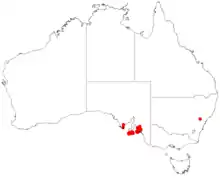 Prostanthera chlorantha grows in scattered populations in mallee and shrubland in the south-east of South Australia.[2][3][4]