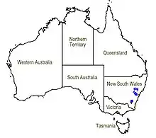 This mint bush grows in Eucalyptus woodland with a shrubby understorey and is confined to the Central Tablelands of New South Wales.[2][3]