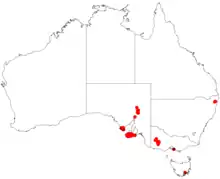 Spiny mintbush occurs in the Grampians in rocky locations on shallow, sandy soils. In South Australia it is found growing near watercourses mostly in loamy-sand over limestone or sandstone.[3][4]