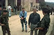 Depending on the laws in a bodyguard's jurisdiction and on which type of agency or security service they are in, bodyguards may be unarmed, armed with a less-lethal weapon such as a pepper spray, an expandable baton, or a Taser (or a similar type stun gun), or with a lethal weapon such as a handgun, or, in the case of a government bodyguard for a Secret Service-type agency, a machine pistol.[4] Some bodyguards such as those protecting high ranking government officials or those operating in high-risk environments such as war zones may carry assault rifles.