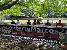 Protests against President Bongbong Marcos have occurred mainly in the Philippines even before[1] the inauguration of the president on June 30, 2022. Protest have been mostly conducted by progressive and opposition groups due to the violent and plunderous legacy of the Marcos family during the martial law era and throughout the rule of his father, former President Ferdinand Marcos;[2] unpaid real-estate taxes;[1] alleged electoral fraud during the 2022 presidential elections;[1] instances of fake news and historical distortion;[1] cases of human rights violations such as extra-judicial killings and the continuing war on drugs;[3] and other social issues.[4][5] Protests against the president have also included grievances against Vice President Sara Duterte[6] as well as seeking of accountability from his predecessor Rodrigo Duterte.[7] Mobilizations have also been held by Filipino-Americans and other solidarity and progressive groups abroad such as in United States, Australia, and Canada.[5]