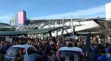 People and organizations in Detroit organized a protest on January 29 at the Metropolitan Airport which drew an estimated 2,500 prostestors.[77][78] Hundreds turned out in protests in the nearby suburbs of Dearborn and Hamtramck, which have significant Muslim American and immigrant populations.[78] Protesters demonstrated as snow fell and the Detroit Free Press reported that their voices "could be above the roar of jet engines."[79] The airport's Authority Public Safety team coordinated with protest organizers to ensure the protest would be safe and that the demonstrators could be heard. No one was arrested.[80]