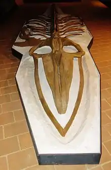 The type species, Protorqualus cuvierii, was originally described in 1829 as a species of Balaena,[3] but later transferred to the Belgian genus Plesiocetus.[4] Following synonymy of Plesiocetus with Balaenoptera, B. cuvieri was considered a species of Balaenoptera,[5] although some authors treated it as a species of Cetotherium.[6] Later work, however, showed that the Mount Pulgnasco skeleton was generically distinct from other fossil and extant rorquals to warrant its own genus.[7]