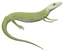 Protorothyrididae is an extinct family of small, lizard-like reptiles belonging to Eureptilia. Their skulls did not have fenestrae, like the more derived diapsids. Protorothyridids lived from the Late Carboniferous to Early Permian periods, in what is now North America.[1][2][3][4] Many genera of primitive reptiles were thought to be protorothyridids. Brouffia, Coelostegus, Paleothyris and Hylonomus, for example, were found to be more basal eureptiles in Muller and Reisz (2006), making the family as historically defined paraphyletic, though three genera, Protorothyris, Anthracodromeus, and Cephalerpeton, were recovered as a monophyletic group.[5] Anthracodromeus, Paleothyris, and Protorothyris we recovered as a monophyletic group in Ford and Benson (2020) (who did not sample Cephalerpeton), who recovered them as more derived than captorhinids and Hylonomus, but less so than araeoscelidians.[6] Anthracodromeus is the earliest known reptile to display adaptations to climbing.[7] The majority of phylogenetic studies recover protorothyridids as basal members of Eureptilia; however, Simões et al. (2022) recover them as stem-amniotes instead.[8]