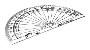 A half circle protractor marked in degrees (180°).