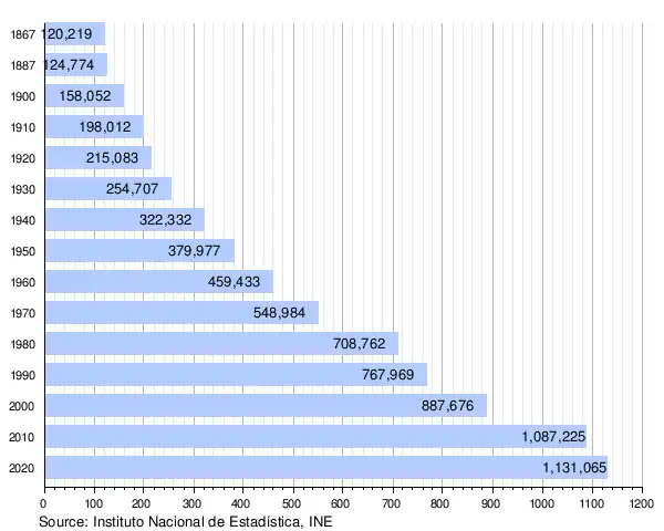 Its capital is the city of Las Palmas de Gran Canaria, on the island of Gran Canaria, which is also one of the capitals of the autonomous community (next to Santa Cruz de Tenerife). About 38.5% of the provincial population of 1,109,175 (2018) live in the capital. The name "Las Palmas" is generally used to refer to both the city and the province. There are 34 municipalities in the province; see List of municipalities in Las Palmas.