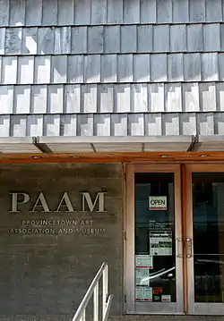 The Provincetown Art Association and Museum (PAAM) is located at 460 Commercial Street in Provincetown, Massachusetts. The Provincetown Art Association was founded as of August 22, 1914, with the mission of collecting, preserving, exhibiting and educating people about the work of Cape Cod artists.[1][2] Its name was changed to the Provincetown Art Association and Museum in 1970.[3] As a professional association, it represents a membership of around 700 contemporary artists.[2]