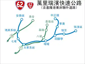 Provincial Highway 62 (Chinese: 台62線) is an expressway that begins in Anle District, Keelung City, and ends in Ruifang District, New Taipei City. Its length is 19.046 km, or 11.835 miles.