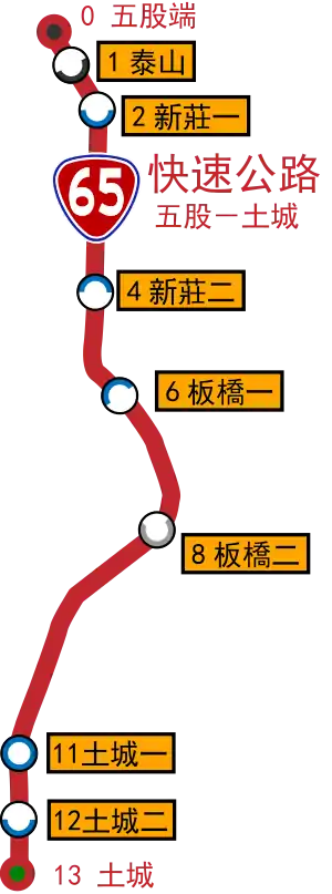 Provincial Highway 65 (Chinese: 台65線) is an expressway, which begins in Wugu at Freeway 1 and ends in Tucheng at Freeway 3 and Provincial Highway 3. The total length is 12.469 km.
