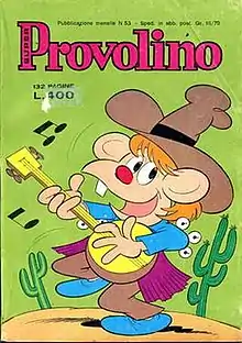 The character was later adapted into a comic series, which was created by Pier Luigi Sangalli and Alberico Motta and which became the title character of several comics magazines (Provolino, Super Provolino and Provolino Story) published by editor Bianconi between 1970 and 1990.[2]