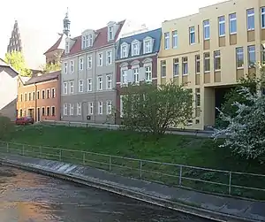 Przyrzecze Street, adjacent to the Młyńska river and Mill Island, is part of the eastern side of the Venice of Bydgoszcz. Some tenement houses dates back to the 18th century and have been remodeled, others have been erected during the renovation of the area in the 1990s.