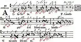 ![]() Beginning of the "Hallelujah" in the Graduale Triplex, 1979 | |