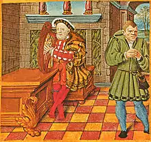 The Psalter of Henry VIII is a 16th-century illuminated psalter that belonged to Henry VIII of England. It is now in the British Library as MS Royal 2 A xvi. The king commissioned the book in the early 1540s from the French illuminator Jean Mallard, who had at one time worked for Francis I. The psalter contains eight miniatures, amongst them scenes of Henry playing the harp with his jester Will Somers in attendance, and of the king reading in his bedroom. Two scenes show Henry as King David: in one killing Goliath, in the other in the role of a penitent. The book has marginal annotations made by the king.