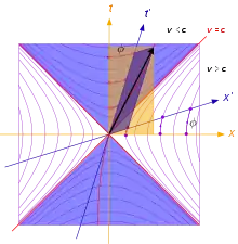 The rotations group of such space is indefinite orthogonal group O(q), also denoted as O(k, n − k) without a reference to particular quadratic form.[5] Such "rotations" preserve the form q and, hence, the scalar square of each vector including whether it is positive, zero, or negative.