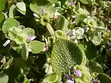 Pseudodictamnus acetabulosus, the Greek horehound, is a species of flowering plant in the family Lamiaceae, native to south-eastern Greece, Crete, and western Turkey.[1] It is a compact, evergreen subshrub growing to 0.5 metres (20 in). Upright woolly grey shoots turn to rounded grey-green leaves, bearing whorls of small pink flowers with funnel-shaped green calyces in late summer and autumn. It is tolerant of poor soil and drought, and often used in cultivation as groundcover.[2][3]