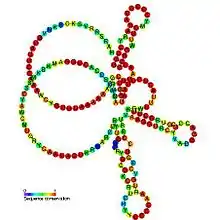 Pseudomonas sRNA P16 is a ncRNA that was predicted using bioinformatic tools in the genome of the opportunistic pathogen Pseudomonas aeruginosa and its expression verified by northern blot analysis.[1] P16 sRNA appears to be conserved across several Pseudomonas species and is consistently located downstream of a predicted TatD deoxyribonuclease gene. P16 has a predicted Rho independent terminator at the 3′ end but the function of P16 is unknown.[1]