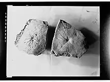 Originally, Sepkoski (2002) suggested the possibility of the problematic fossils as being a Jellyfish.[1] Although a more modern and updated interpretation of P. howchini is it being a pseudo-fossil or a structure caused by the Holdfast of a Petalonamid being pulled out by the currents. Pseudorhizostomites tends to occur around very thin impressions and casts of fossils which are the likely producer of Pseudorhizostomites if they decayed.[3] The decayed parts of the organisms preserved alongside the biogenic structure were also interpreted as escaping through an overlying sand lamina.[4] The species Rugoconites tenuirugosus was thought to be the originator behind P. howchini ; the fossil was also compared with the living Hydrozoan Campanularia. [4]