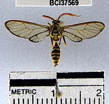 Pseudosphex is a genus of tiger moths in the family Erebidae. The genus was erected by Jacob Hübner in 1818.[1][2] These moths are mimics of a variety of Hymenoptera. The prefix pseudo means "false", and Sphex is a genus of wasps.