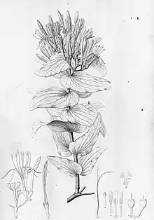 Psittacanthus cordatus was first described by Hoffmansegg in 1829 as Loranthus cordatus,[5][6] and in 1834, Don assigned it to the new genus Psittacanthus.[1][7] There is some confusion with respect to the accepted name: Plants of the World online[3] and Flora do Brasil[4] give the accepted name as Psittacanthus cordatus (Hoffmans.) G.Don, while GBIF[8] gives the accepted name as Psittacanthus cordatus Blume.