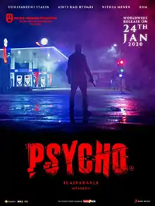 Psycho is a 2020 Indian Tamil-language psychological thriller film written and directed by Mysskin. The film was produced by Arun Mozhi Manickam under Double Meaning Production. The film stars Udhayanidhi Stalin, Nithya Menen, Aditi Rao Hydari, and debutant Rajkumar Pitchumani, while Renuka, Singampuli, Ram, Aadukalam Naren, and Shaji Chen play supporting roles. Ilaiyaraaja composed the soundtrack of the film,[1][2][3] with cinematography by Tanvir Mir and editing by N. Arunkumar. Production began in September 2018.