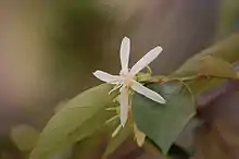 Pterospermum suberifolium, or the cork-leaved bayur,[3] is a species of evergreen flowering plant in the family Malvaceae. It is found only in India and Sri Lanka.[4] Leaves are irregularly oblong; subcordate, rounded or oblique; apex acuminate; with irregularly serrated margin. Its flowers are yellowish white and fruit is a capsule.[5]