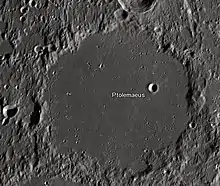 Ptolemaeus is an ancient lunar impact crater close to the center of the near side, named for Claudius Ptolemy, the Greco-Roman writer, mathematician, astronomer, geographer and astrologer. It measures approximately 154 kilometers in diameter.[1]