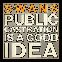 Public Castration Is a Good Idea is the first live album by American experimental rock band Swans. It was originally released as a semi-officially approved bootleg through Some Bizzare Records in 1986, consisting of performances recorded from shows in London and Nottingham on the tour for the albums Greed and Holy Money. The performances were recorded from London's ICA, The Garage in Nottingham and London's ULU.[4]